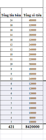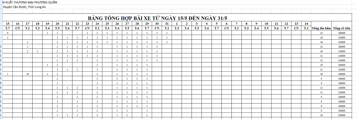 Tổng số lần xe ra vào cảng = Tỗng số tiền thực tế
