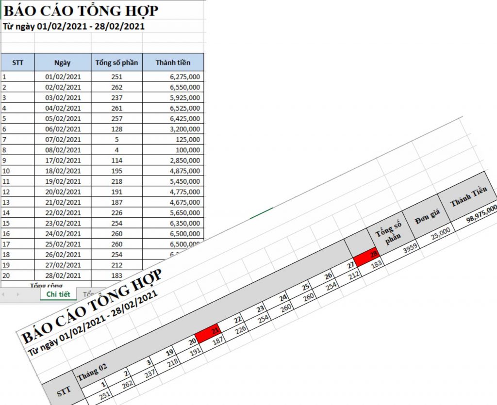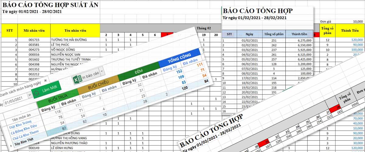Xuất báo cáo trong phần mềm quản lý suất ăn công nghiệp