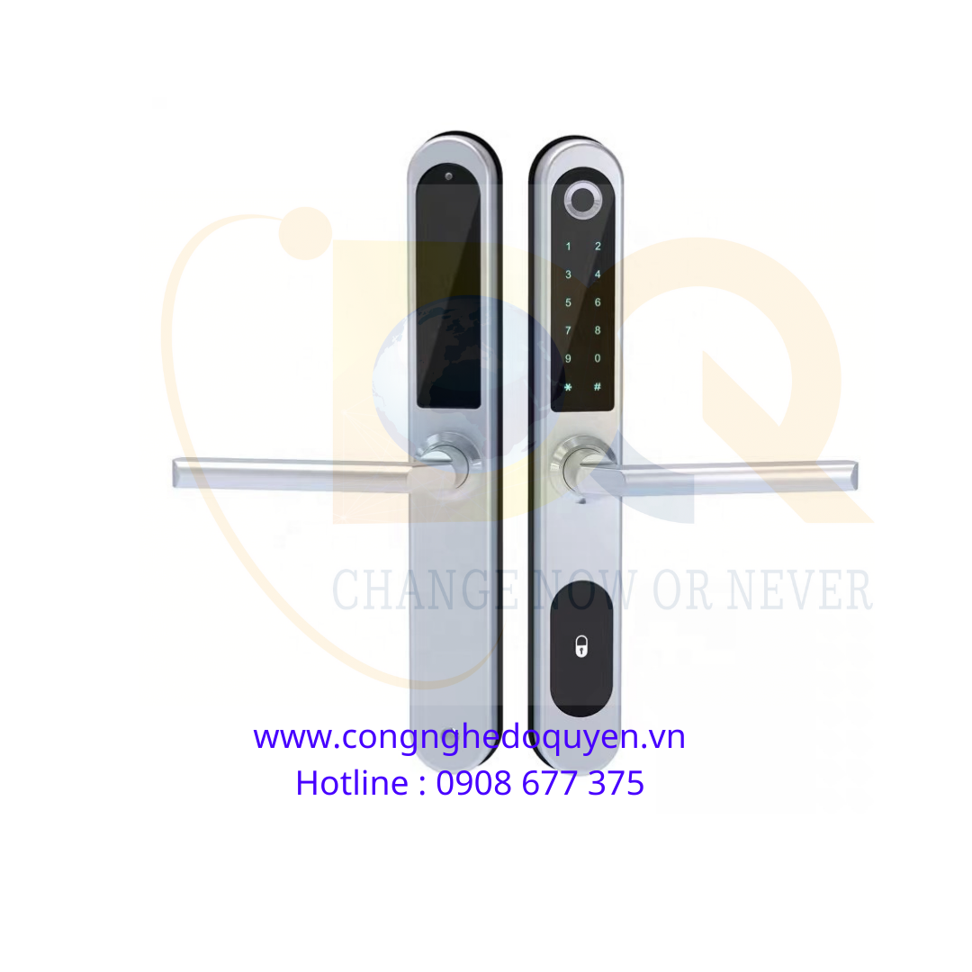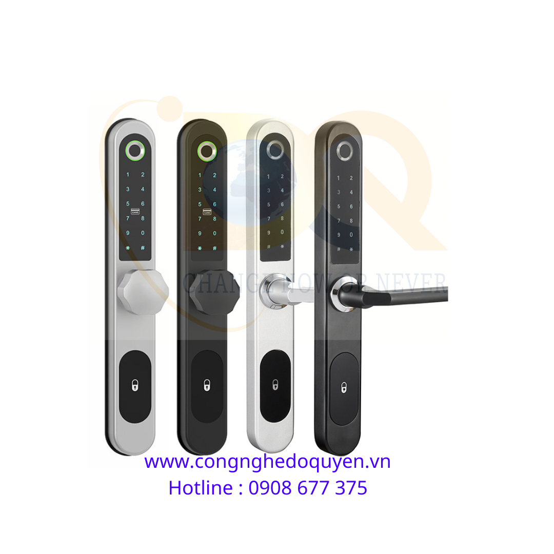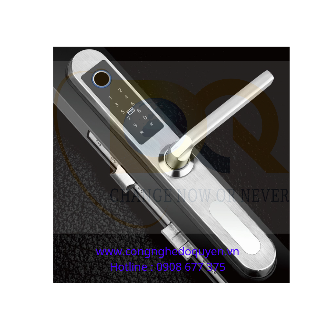 Khóa cửa thông minh với chức năng mở cửa bằng vân tay, thẻ, mật khẩu, chìa cơ --- Bộ nhớ 100 vân tay, 200 mật khẩu + thẻ --- Kích thước: 42 x 315 mm --- Chất liệu: Hợp kim nhôm --- Màu sắc : Black/Silver.