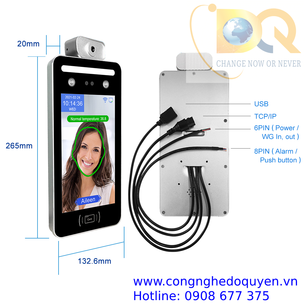Máy Chấm Công Đo Nhiệt Độ AI08T