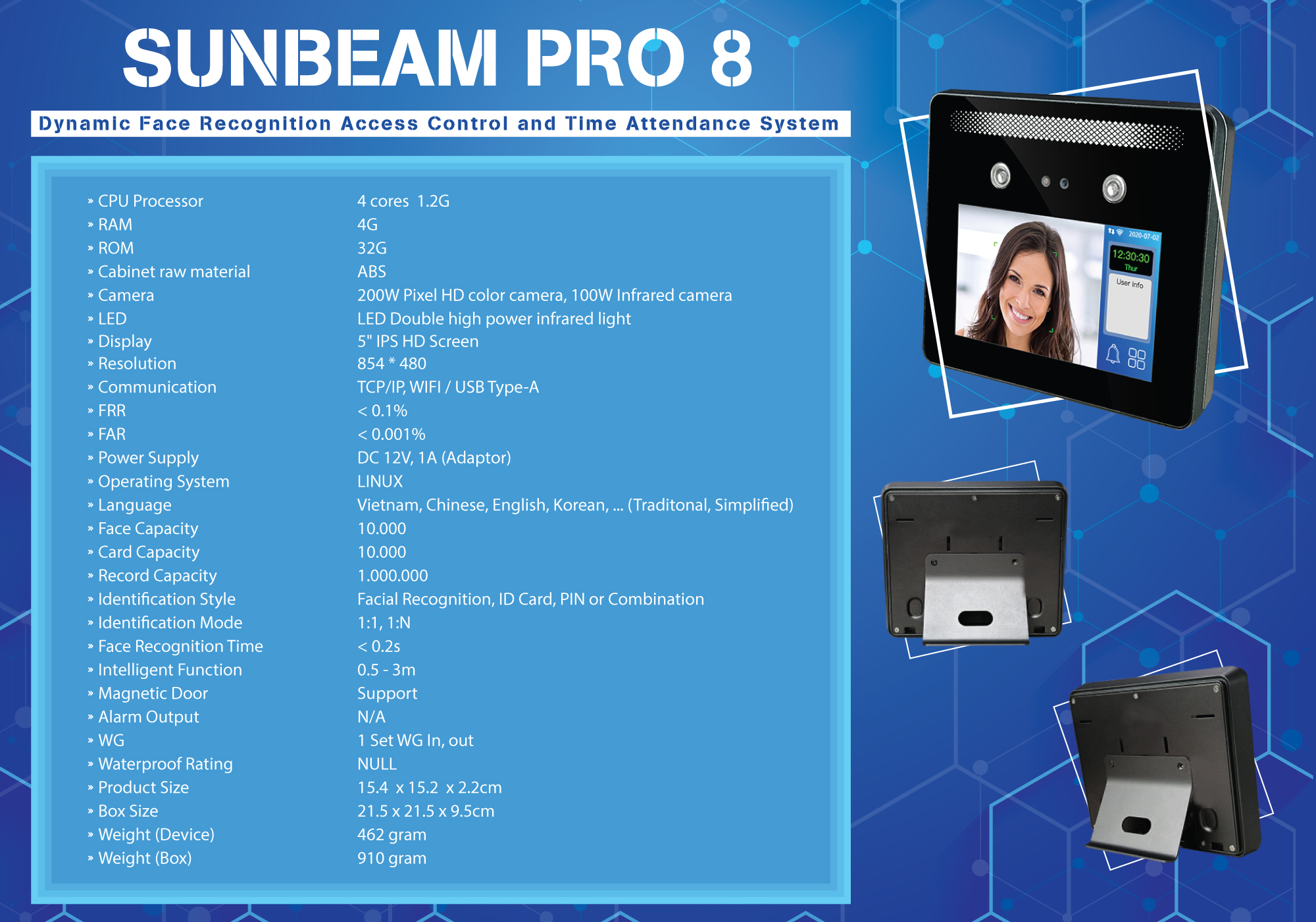 - Tốc độ nhận diện khuôn mặt: < 0.2 giây.
