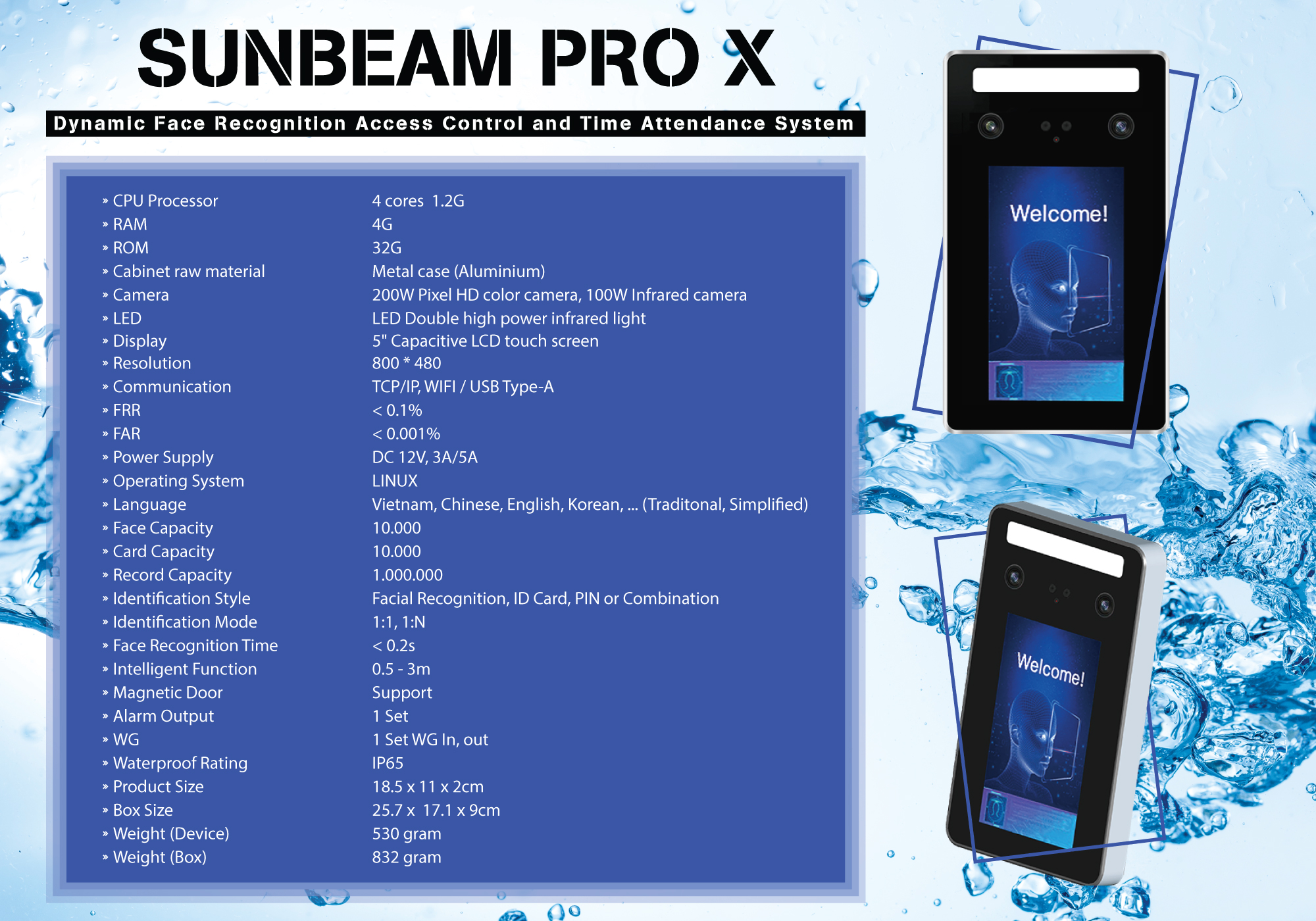 - Tốc độ nhận diện khuôn mặt: < 0.2 giây.
