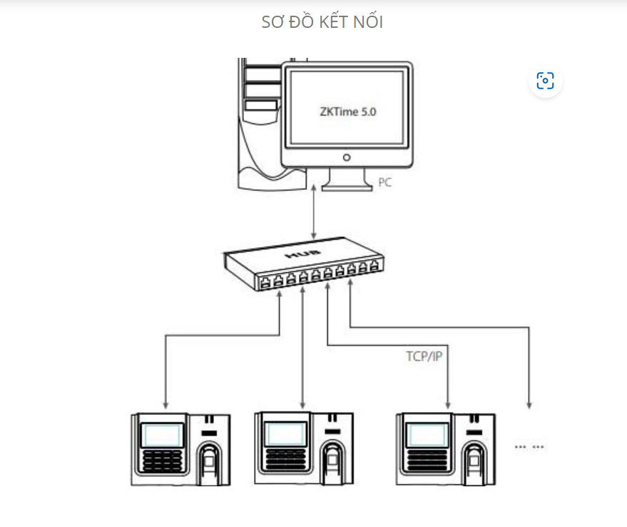 - Thiết bị được kết nối trực tiếp đến máy tính hoặc thông qua mạng TCP/IP.