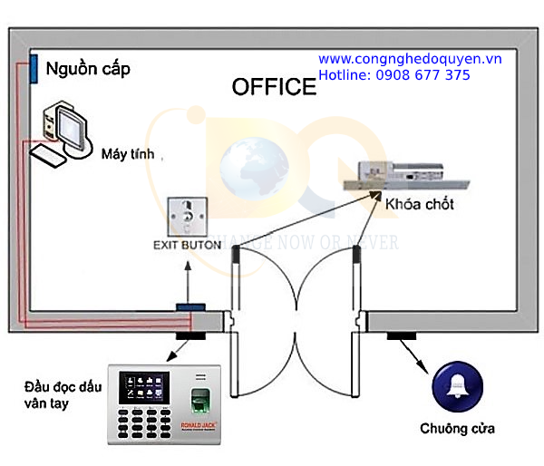 - Kết nối khóa, chuông, Exit, Hộp đập dùng cho hệ thống kiếm soát ra vào