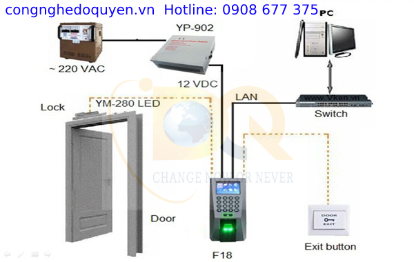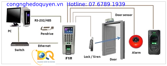 Thành phần của hệ thống kiểm soát cửa kết hợp máy chấm công F18 bao gồm